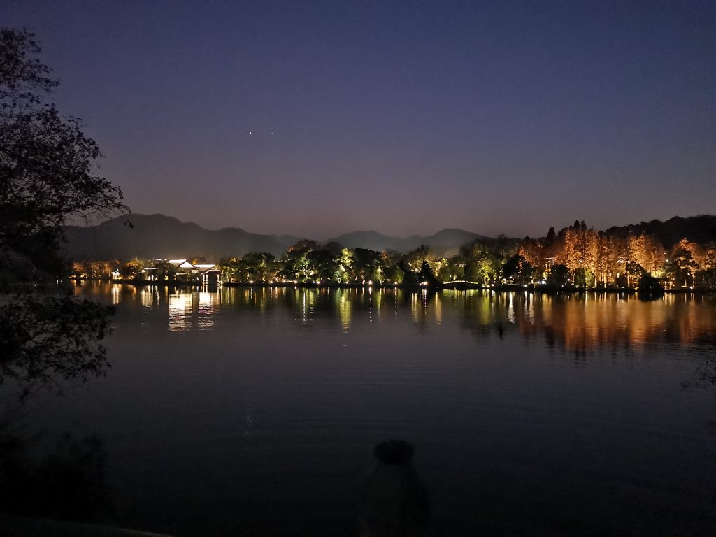 想到这里,当19年我去西湖的时候,我没有再去看上次毕业旅行没有看完的西湖景色,而是急匆匆的在夜色下像个没头苍蝇一样想去看看西湖的于谦墓。可惜那时是冬天,刚走到一半,西湖里已经漆黑一片,我没有找到于谦墓,只拍了一张西湖外的万家灯火。我想,于谦静静的躺在这里看着西湖外的繁华,应该和他出德胜门回望他要守卫的北京城的市井繁华,没有什么两样。